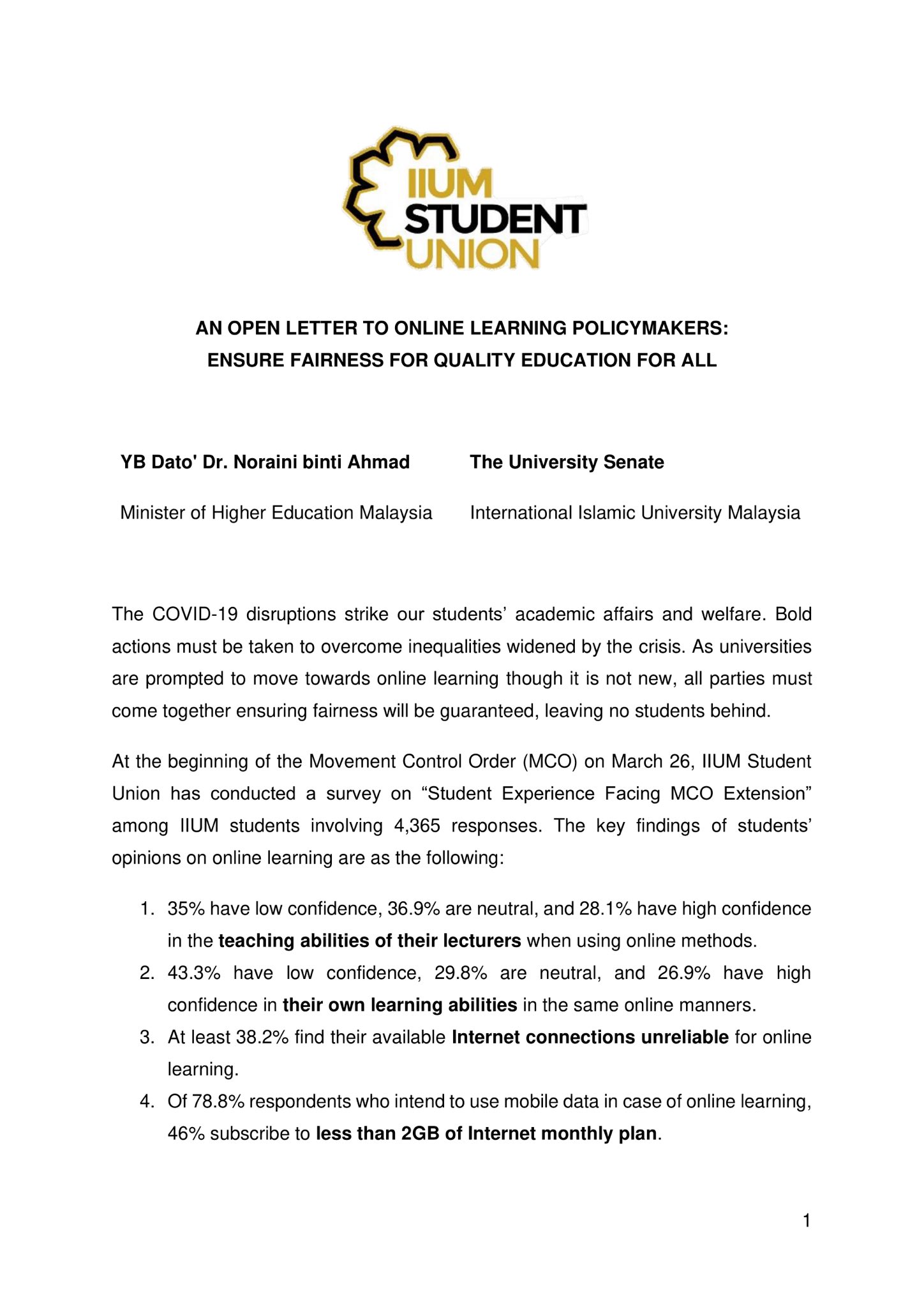 Iium Student Union On Twitter Open Letter To Online Learning Policy Makers With Regards To The Recent Policy On Online Learning By The Ministry Of Higher Education Iium Student Union Believes Students